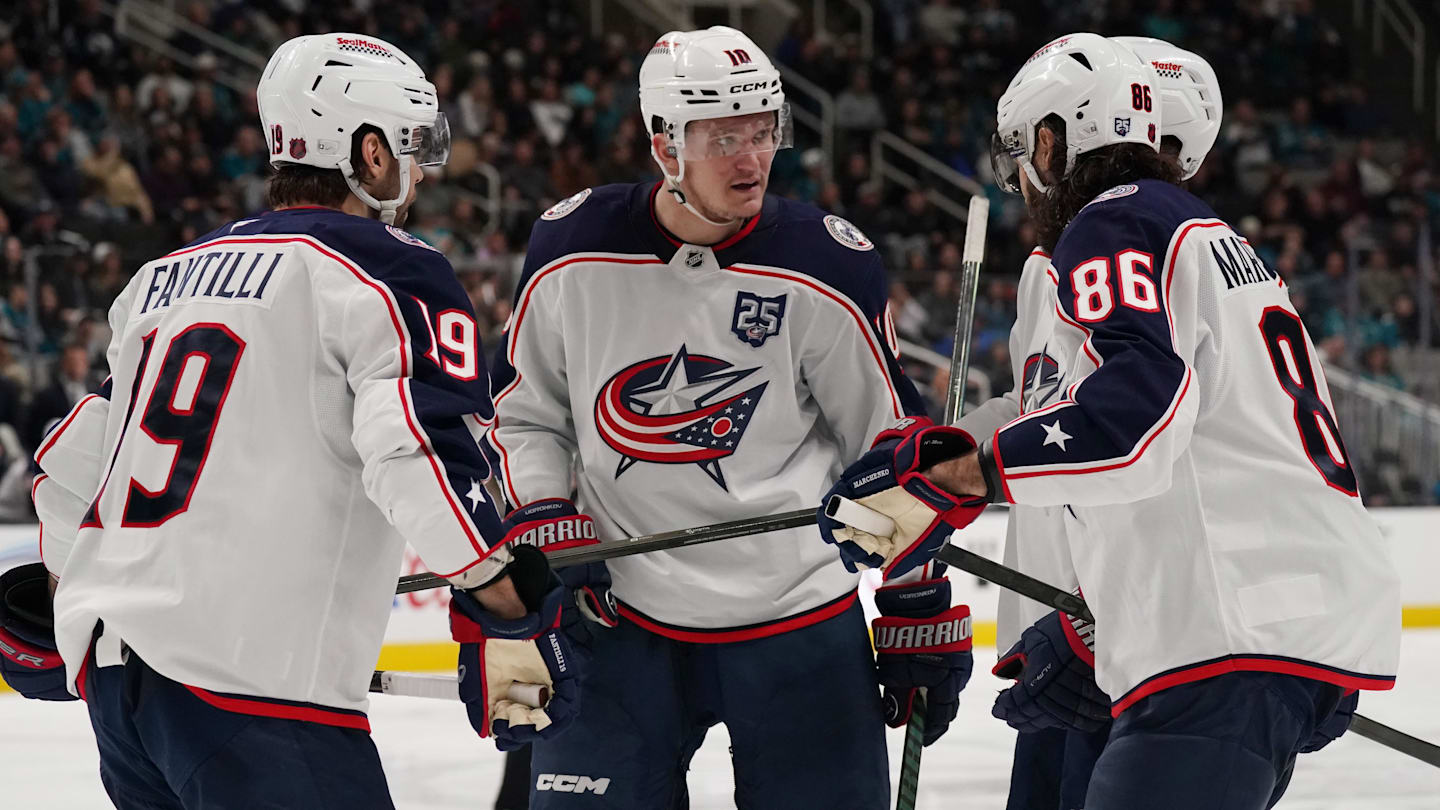 The team's usual second line is currently dismantled. Dmitri Voronkov, Sean Monahan, and Kent Johnson have been split up as Rick Bowness tries to find the right formula to get the team going again.
